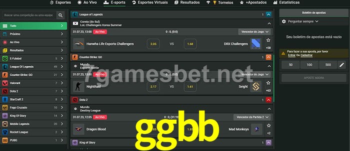 O ggbb oferece uma grande seleção de opções de apostas em e-sports com probabilidades competitivas